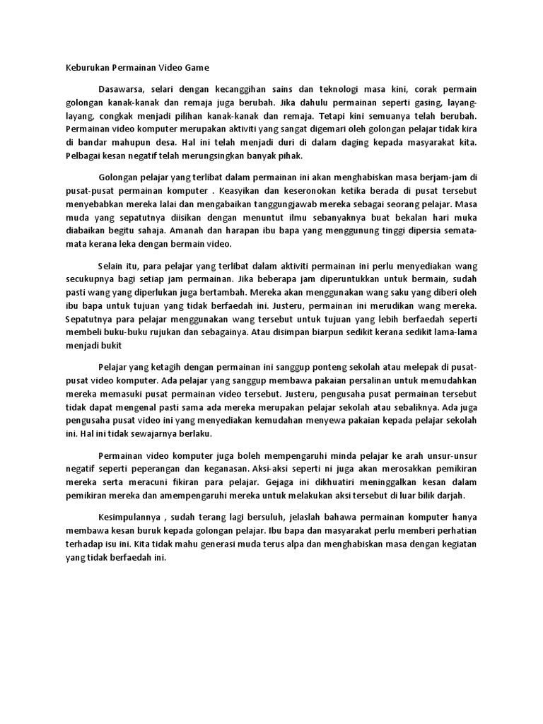 Keburukan Permainan Video Berkomputer Pdf